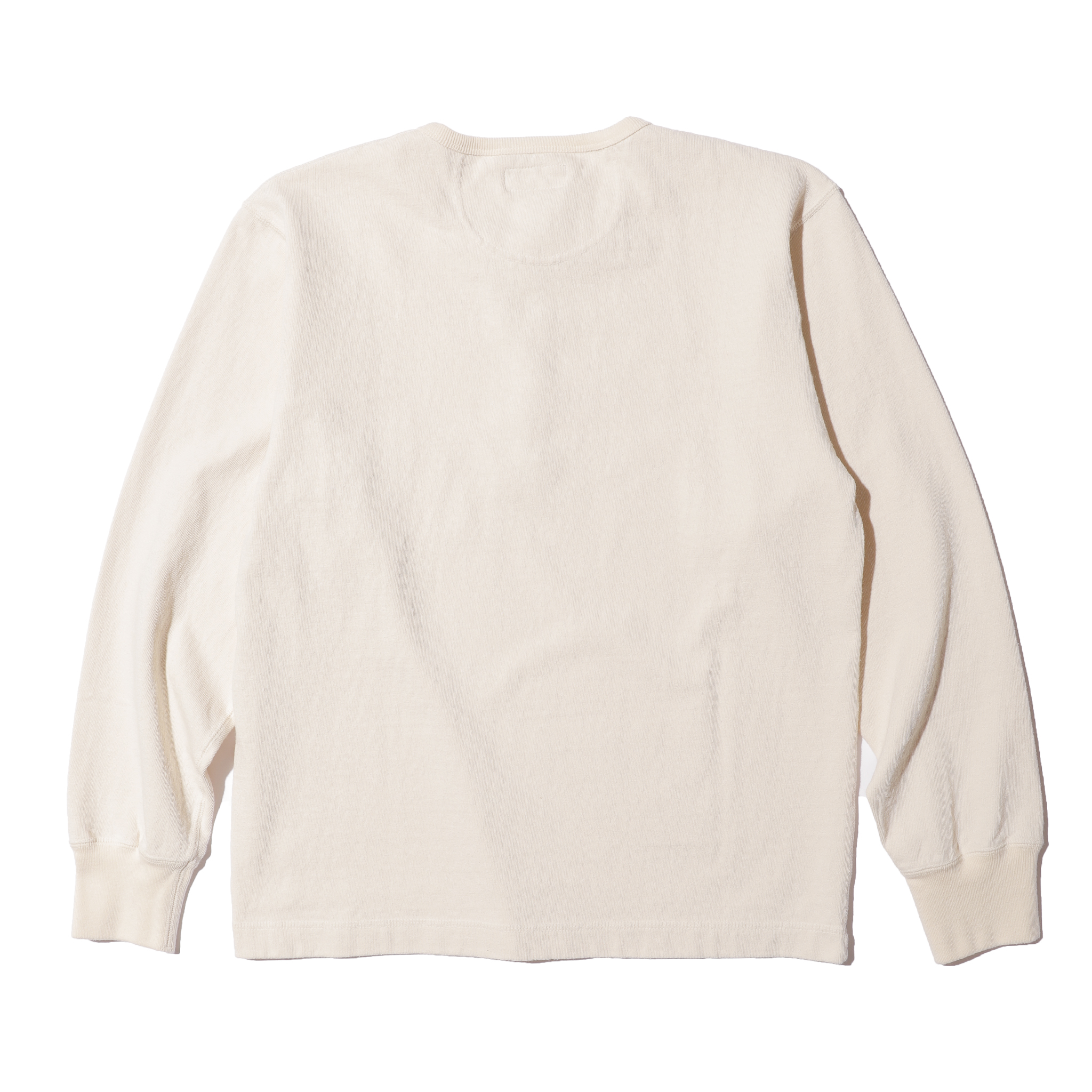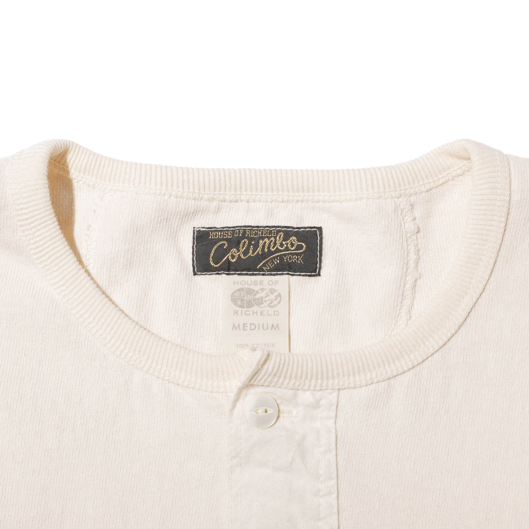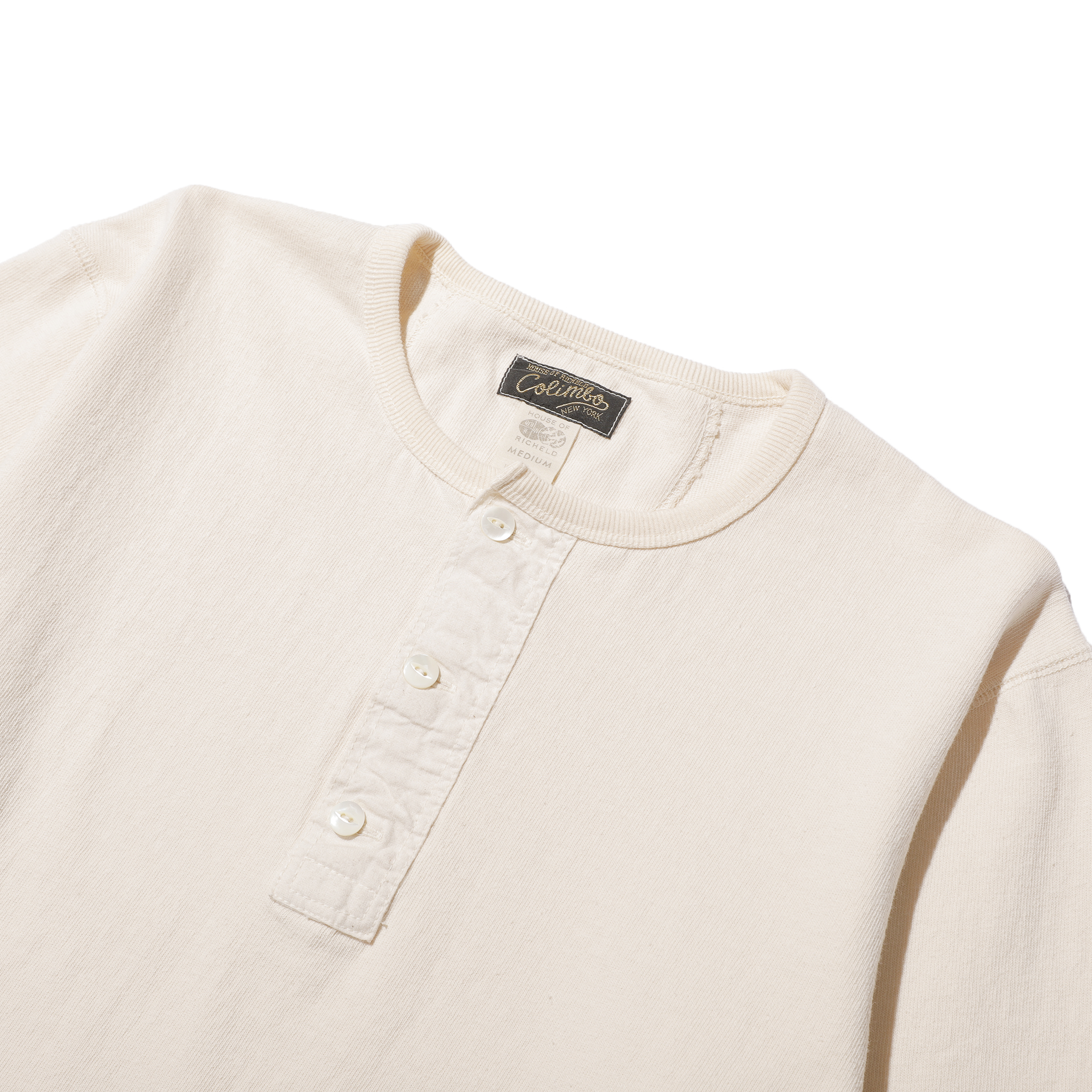 10番のカード糸を使用の単糸度詰め天竺を使用したクラシカルなヘンリーネックTeeです。