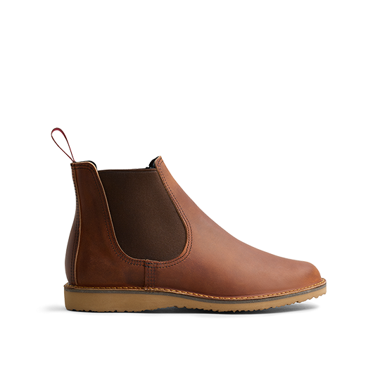 英国の乗馬用ブーツにルーツを持つこサイドゴア・ブーツは19世紀にロンドンのチェルシー地区で流行したため「チェルシー」の名が付いたと言われています。フォーマルな靴によく用いられるデザインですが、その機能性の高さからワークブーツとしても古くから用いられてきました。靴の側面に縫い付けられたゴア(ゴム布)により着脱がスムーズになり、足首にしっかりフィットして泥などの侵入も防ぐ事ができます。