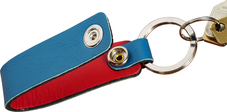 デラックスなベルトループキーホルダーは、ヘビーデューティーで、高級馬革のループと相まって、ジャケットにマッチする赤の裏地が特徴です。