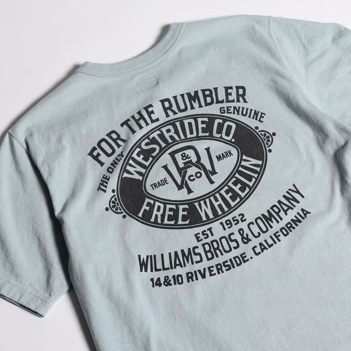旧くは「4輪の馬車=音を立てて前に進むもの」を意味するRUMBLERSのワード。そんな人々の為の当時の衣料メーカーの旧き良きアドバタイズ風イメージでまとめ上げた、PSYCHO氏描き下ろしとなる今季の新作メイングラフィック。WILLIAMS BROSの名前でシーズンテーマに繋がる「JAMBALAYA」のカントリー・シンガーと、自由への「解放」を表現するシンプルながら威風堂々とした存在感とストーリー性が溢れる今季のメインTEE。